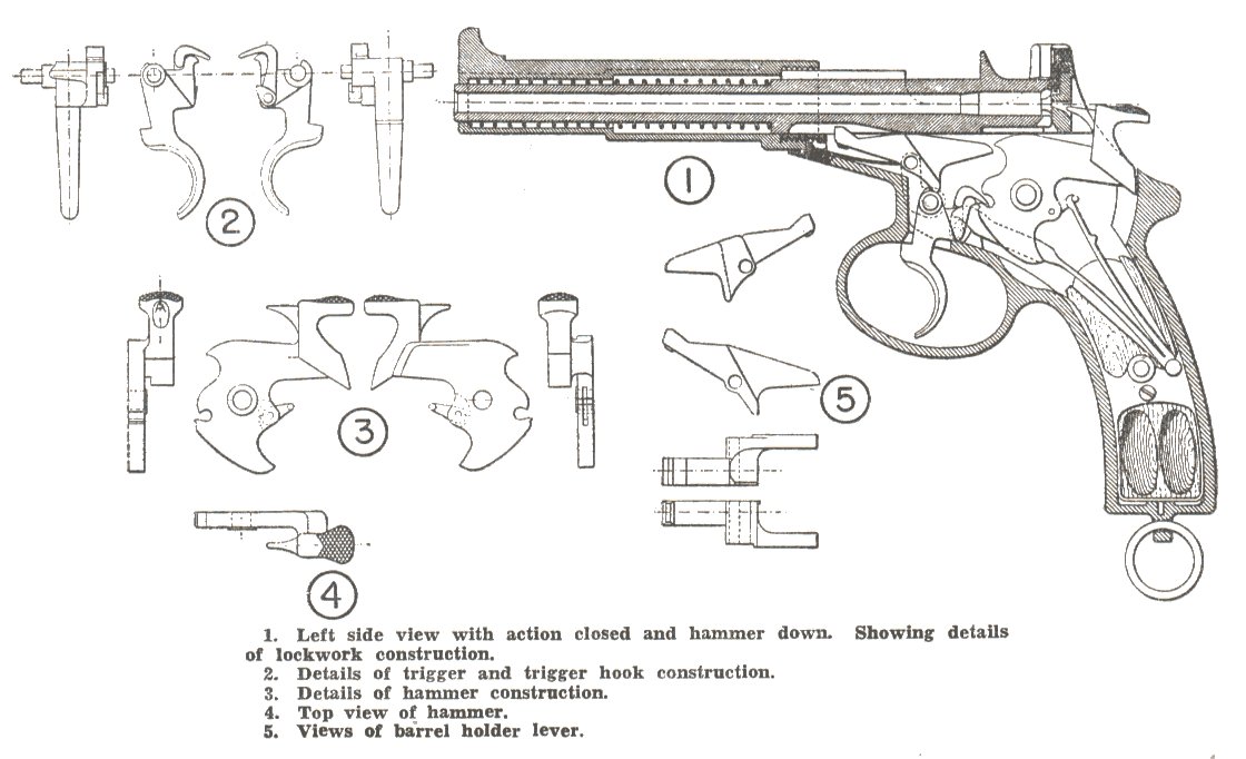The hammer had a rebound position guarding against a slam fire and allowing the pistol to be safely carried with a cartridge in the chamber.