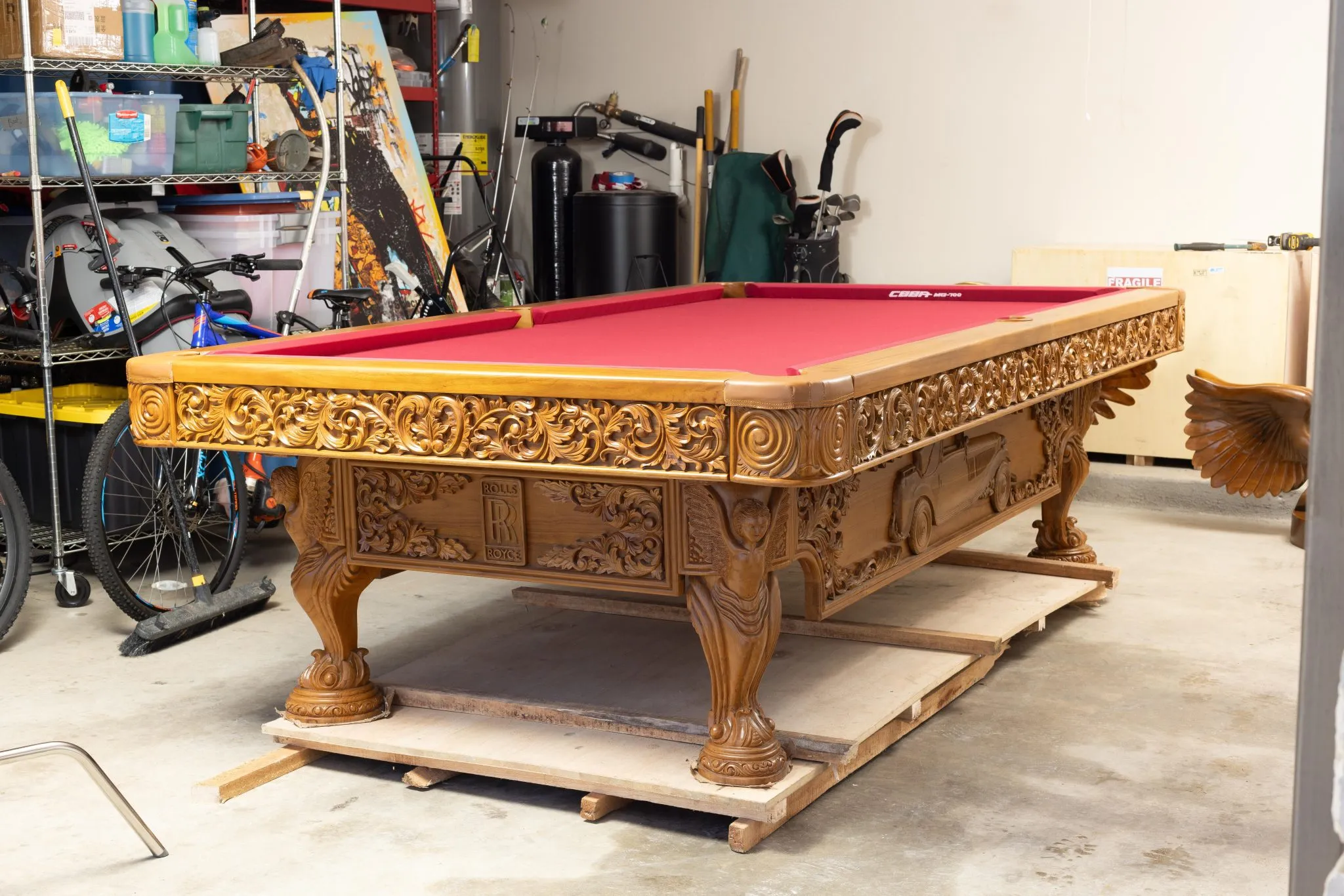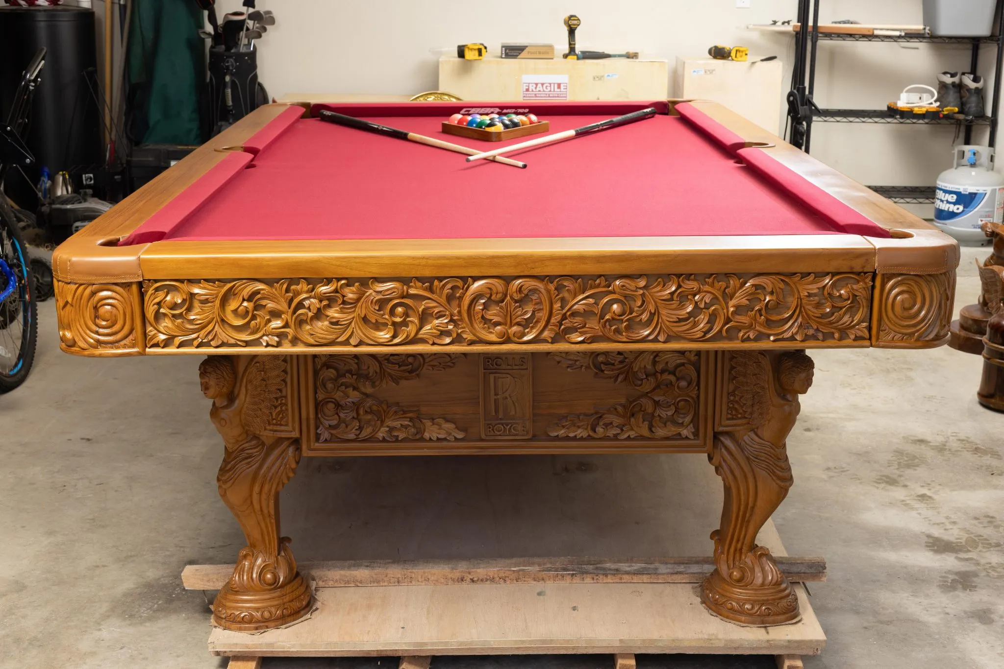 - This Rolls-Royce themed hand carved teak pool table is full size and a thing of beauty, especially for a car aficionado.